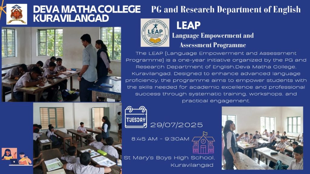 The Deva Matha English Literary Association (DMELA) serves as the department’s vibrant co-curricular body, offering students a dynamic platform to explore both canonical English literature and the evolving voices of contemporary writing. DMELA coordinates and oversees all literary association activities throughout the academic year.